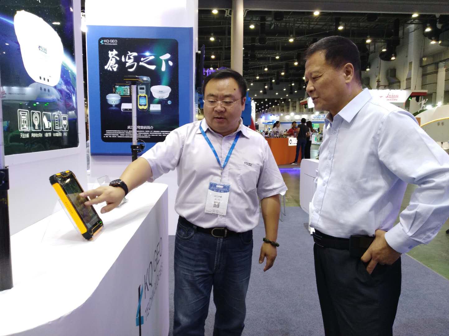 國家測繪局副局長宋超智(右)參觀蒼穹數(shù)碼展臺