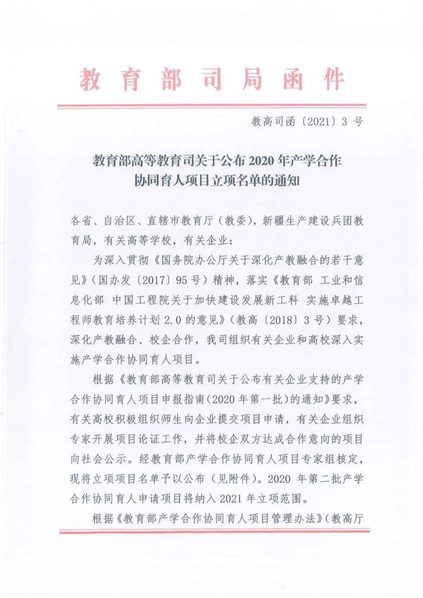 教育部2020年產(chǎn)學合作協(xié)同育人項目立項名單(企業(yè)順序)
