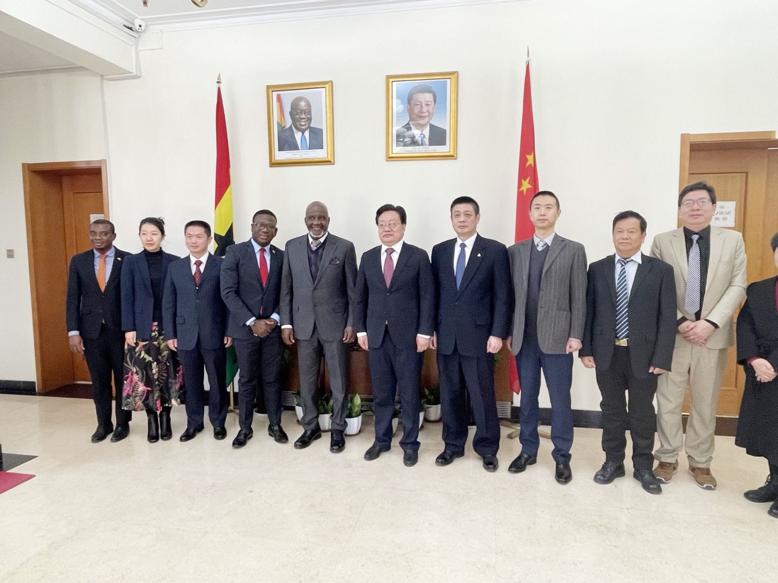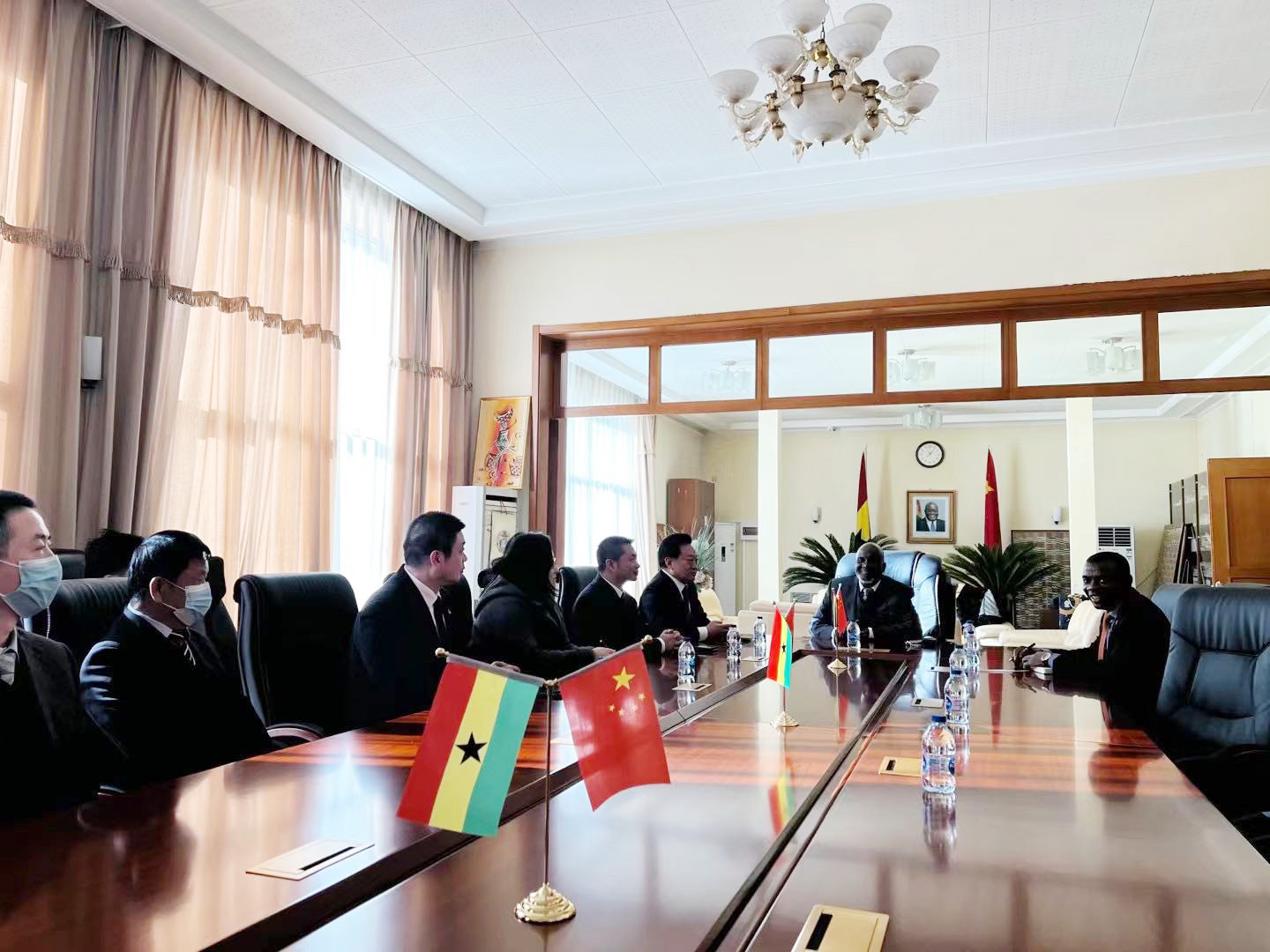 2021年11月22日,中國國際經(jīng)濟(jì)技術(shù)合作促進(jìn)會黃兆錦會長一行、蒼穹數(shù)碼國際商務(wù)一部安科經(jīng)理一行,應(yīng)邀到訪加納共和國駐中國大使館開展座談交流!期間,我方一行領(lǐng)導(dǎo)會見了新任駐華大使溫弗雷德.哈蒙德閣下、公使約翰.博阿基耶及社交秘書陽光先生。