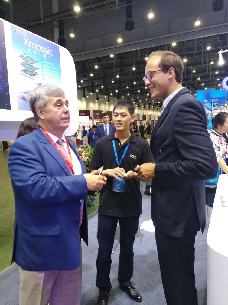 國家測繪局副局長宋超智(右)參觀蒼穹數(shù)碼展臺