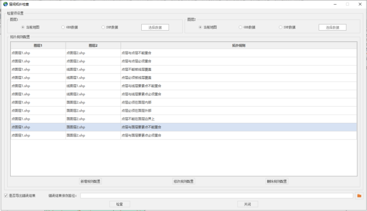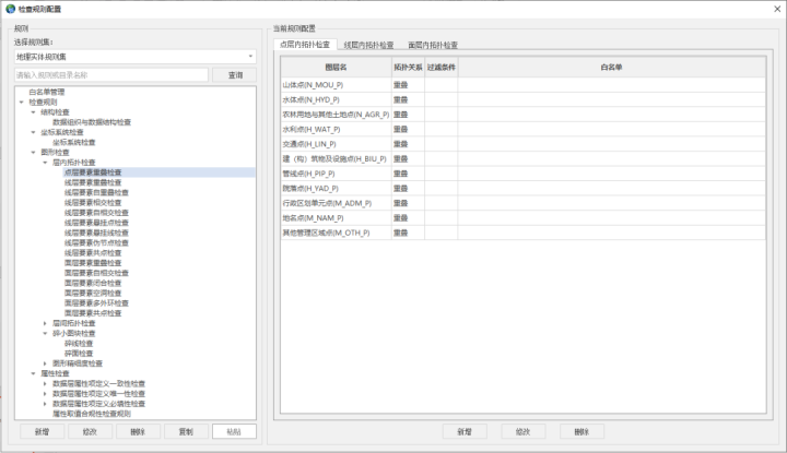 針對(duì)具體的數(shù)據(jù)檢查項(xiàng)目,基于系統(tǒng)提供的檢查算子,結(jié)合不同的數(shù)據(jù)規(guī)范要求,形成檢查規(guī)則集:一方面可按照數(shù)據(jù)規(guī)范明確的內(nèi)容進(jìn)行配置,另一方面可結(jié)合地方特色進(jìn)行本地化的規(guī)則細(xì)項(xiàng)配置,自由組裝形成對(duì)應(yīng)的檢查規(guī)則,滿(mǎn)足不同業(yè)務(wù)場(chǎng)景及本地化需求的地理信息數(shù)據(jù)質(zhì)量核查要求。