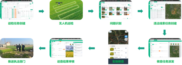 借助無(wú)人機(jī)低空監(jiān)測(cè)能力,結(jié)合蒼穹低空AI引擎,構(gòu)建“空天地視網(wǎng)”智能感知體系,以AI遙感智能解譯、AI視頻智能識(shí)別為手段,全方位精準(zhǔn)捕捉涉耕問(wèn)題,并形成多源問(wèn)題識(shí)別、實(shí)地巡查核實(shí)、審核對(duì)接處置管理閉環(huán),確保各類涉耕問(wèn)題早發(fā)現(xiàn)、早制止、早處理。