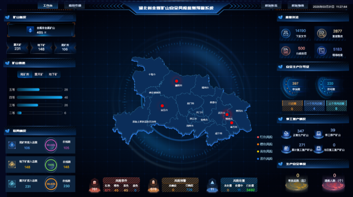蒼穹數(shù)碼憑借在技術(shù)研發(fā)和數(shù)據(jù)處理方面的專業(yè)優(yōu)勢,助力湖北省應(yīng)急管理廳實現(xiàn)對全省非煤礦山的全面、精準掌控。該系統(tǒng)與企業(yè)應(yīng)用及監(jiān)管部門各類系統(tǒng)無縫對接,厘清全省非煤礦山底數(shù),并依據(jù)礦山規(guī)模、風(fēng)險程度等因素,科學(xué)劃分礦山等級。同時,系統(tǒng)實現(xiàn)礦山監(jiān)測聯(lián)網(wǎng),應(yīng)急部門可實時掌握礦山監(jiān)管執(zhí)法動態(tài)、安全生產(chǎn)許可證持證情況、復(fù)工復(fù)產(chǎn)進度以及安全事故信息等關(guān)鍵數(shù)據(jù)。這些詳實信息,為監(jiān)管部門制定針對性監(jiān)管策略、開展精準執(zhí)法提供堅實依據(jù),也為礦山企業(yè)安全生產(chǎn)管理指明方向。
