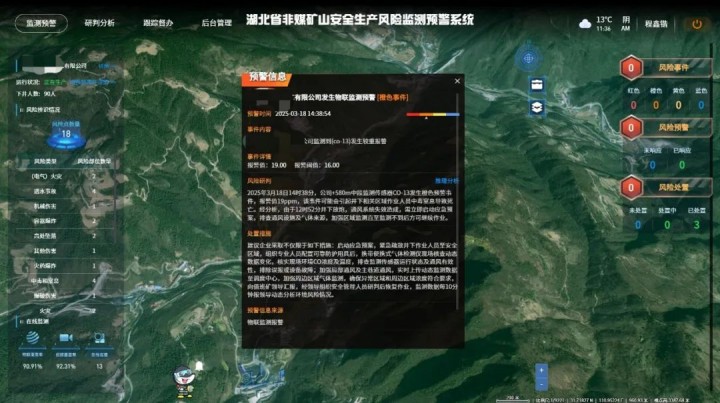 由聯(lián)投湖北省數(shù)產(chǎn)集團負責(zé)總集成、蒼穹數(shù)碼技術(shù)股份有限公司參與共建的湖北省風(fēng)險隱患監(jiān)測預(yù)警平臺,已成為守護礦山安全的堅實屏障,成效顯著。其中,蒼穹數(shù)碼推出的非煤礦山安全風(fēng)險監(jiān)測預(yù)警系統(tǒng),為全省非煤礦山安全監(jiān)管注入強大科技動力,全方位筑牢礦山安全生產(chǎn)防線。