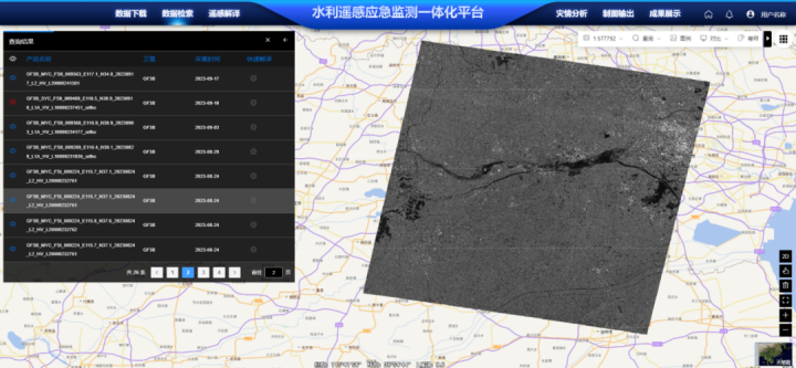 (2)支持國內(nèi)外主流雷達(dá)、光學(xué)衛(wèi)星數(shù)據(jù)下載、預(yù)處理、入庫、檢索全鏈路、智能化管理,提升衛(wèi)星數(shù)據(jù)處理、應(yīng)用效率,為應(yīng)急救災(zāi)調(diào)度提供決策支持。