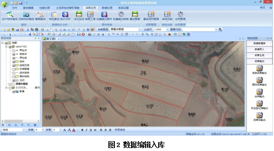 系統(tǒng)為用戶提供基于ARCGIS平臺(tái)或KQGIS平臺(tái)可選的建庫(kù)軟件,滿足用戶在各鄉(xiāng)鎮(zhèn)農(nóng)村土地承包調(diào)查成果的基礎(chǔ)上,實(shí)現(xiàn)采集轉(zhuǎn)換、空間及權(quán)屬數(shù)據(jù)整理、接收轉(zhuǎn)換、檢查處理、入庫(kù)維護(hù)、圖件、表格成果一鍵輸出、數(shù)據(jù)更新等功能,完成農(nóng)村土地承包經(jīng)營(yíng)權(quán)數(shù)據(jù)庫(kù)的建設(shè)。