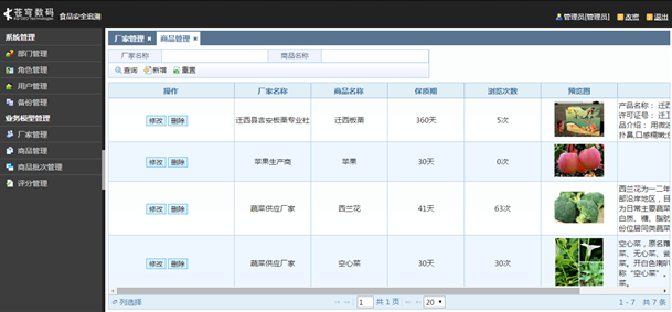由蒼穹公司自主研發(fā)的溯源綜合管理平臺,按照商務部發(fā)布的食品安全追溯流通體系標準,運用計算機、數字化物流管理等技術,對農產品從生產源頭到消費市場實施精細化管理,全程記錄下種植養(yǎng)殖戶在生產、加工、流通各個環(huán)節(jié)的質量安全信息,使農產品質量有了較強的可追溯性,從根源上實現規(guī)范化種植、標準化養(yǎng)殖,切實保障消費者對農產品生產、加工、運輸等過程相關信息的知情權,實現責任到人,有效防止食品安全問題的發(fā)生,讓廣大消費者買的放心,吃的安心。同時系統開發(fā)了防竄貨功能模塊,通過該系統可加強企業(yè)對產品市場流通環(huán)節(jié)的管理,防止竄貨、換貨等事件發(fā)生,規(guī)范市場。