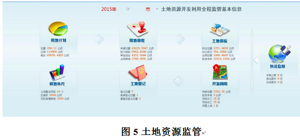Based on the core database of land resources, the platform comprehensively analyzes data and requirements of comprehensive supervision. Through the data collection process such as data extraction, transformation, cleaning and loading, the platform eventually fosters a comprehensive supervision database, which lies a data foundation for the decision-making, management, application and “pre-approval, in-approval and post-approval supervision” of land resources and then achieves information inspection, and early warning disposal etc. so as to truly improve the business supervision level of land resources.