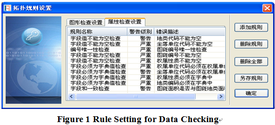 Processing the data in batch or in interactive method according to the detected error types; powerful data topological processing function including basic graph processing, land features normalization processing, path arrangement, ring-on-ring processing, fixed zooming, redundancy disposal and topological consistency processing.