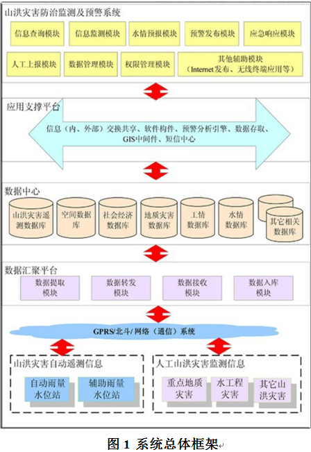 The system provides the services of real-time monitoring on mountain flood data. Monitoring objects: river channels, reservoirs, ponds, embankments and flood prone areas; monitoring items: water level, rainfall amount, water flow, videos, etc; monitoring methods: automatic collection, classified storage, display and transformation of manual data input and real-time data, providing an informational foundation for mountain flood early warning system.