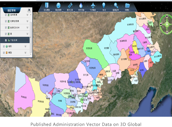 •Compatible with 2D web services in 3D scene, no extra map tiling and publishing